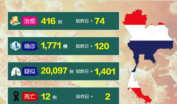 就在3月26日,泰国政府又正式下令“封国”,并强制实行1个月。截止目前, 泰国面对新冠病毒疫情爆发已经将近两个多月了,疫情状况日渐加重,感染人数日增百人左右。4月2日,泰国累计已确诊病例1875例,15例死亡病例。
